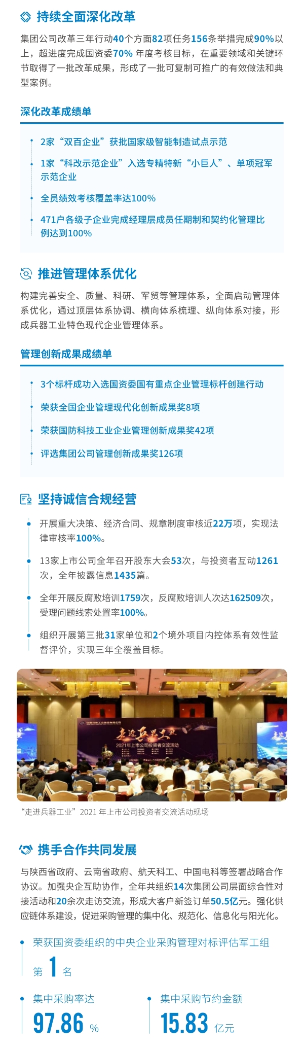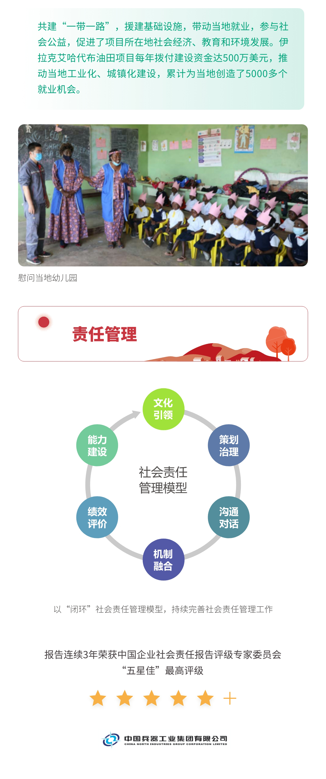 近日,兵器工业集团正式发布第十三份年度社会责任报告——《环球体育2021年社会责任报告》,以“用心守护和平、用力争创一流、用情温暖社会”为主题,从恪守强军首责、服务经济建设、共创美好生活三个维度,向社会全面披露2021年度履责实践和履责业绩。《报告》连续第三年获得中国企业社会责任报告评级专家委员会“五星佳”评级,兵器工业集团成为军工行业唯一连续11年获得五星及五星佳最高评级的企业。