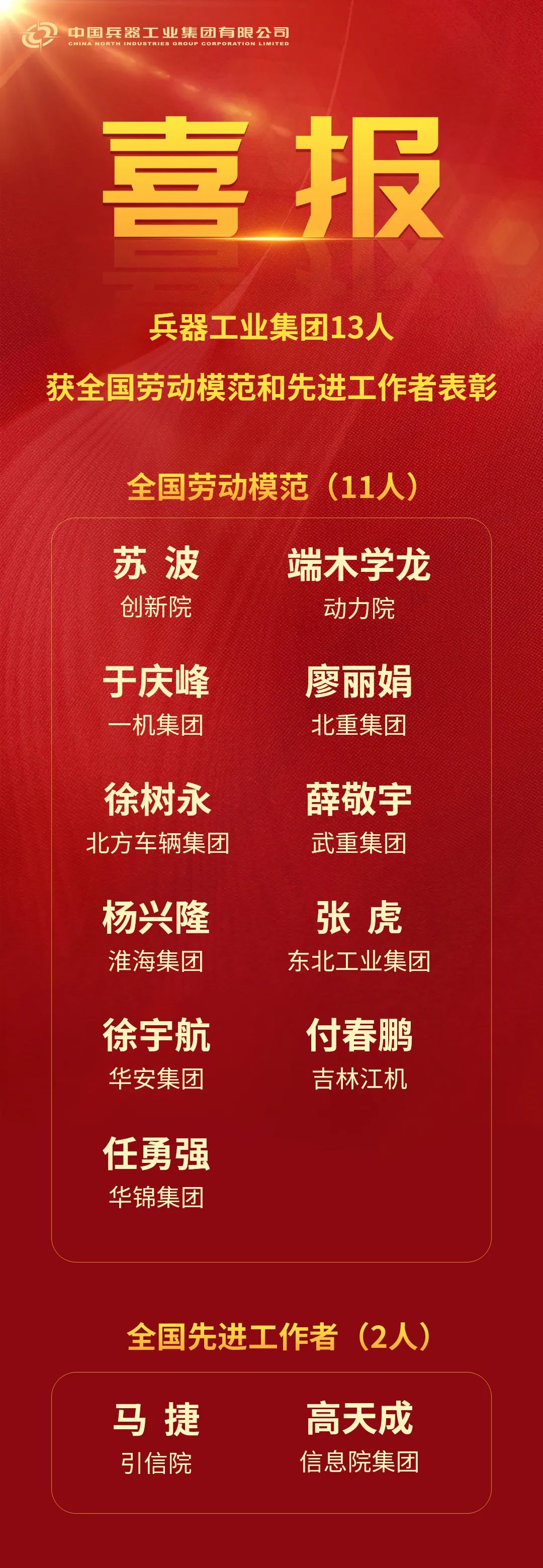 4月28日,庆祝中华全国总工会成立100周年暨全国劳动模范和先进工作者表彰大会在北京举行,大会表彰了1670名全国劳动模范和756名全国先进工作者。环球体育13人荣获表彰,其中全国劳动模范11人、全国先进工作者2人。